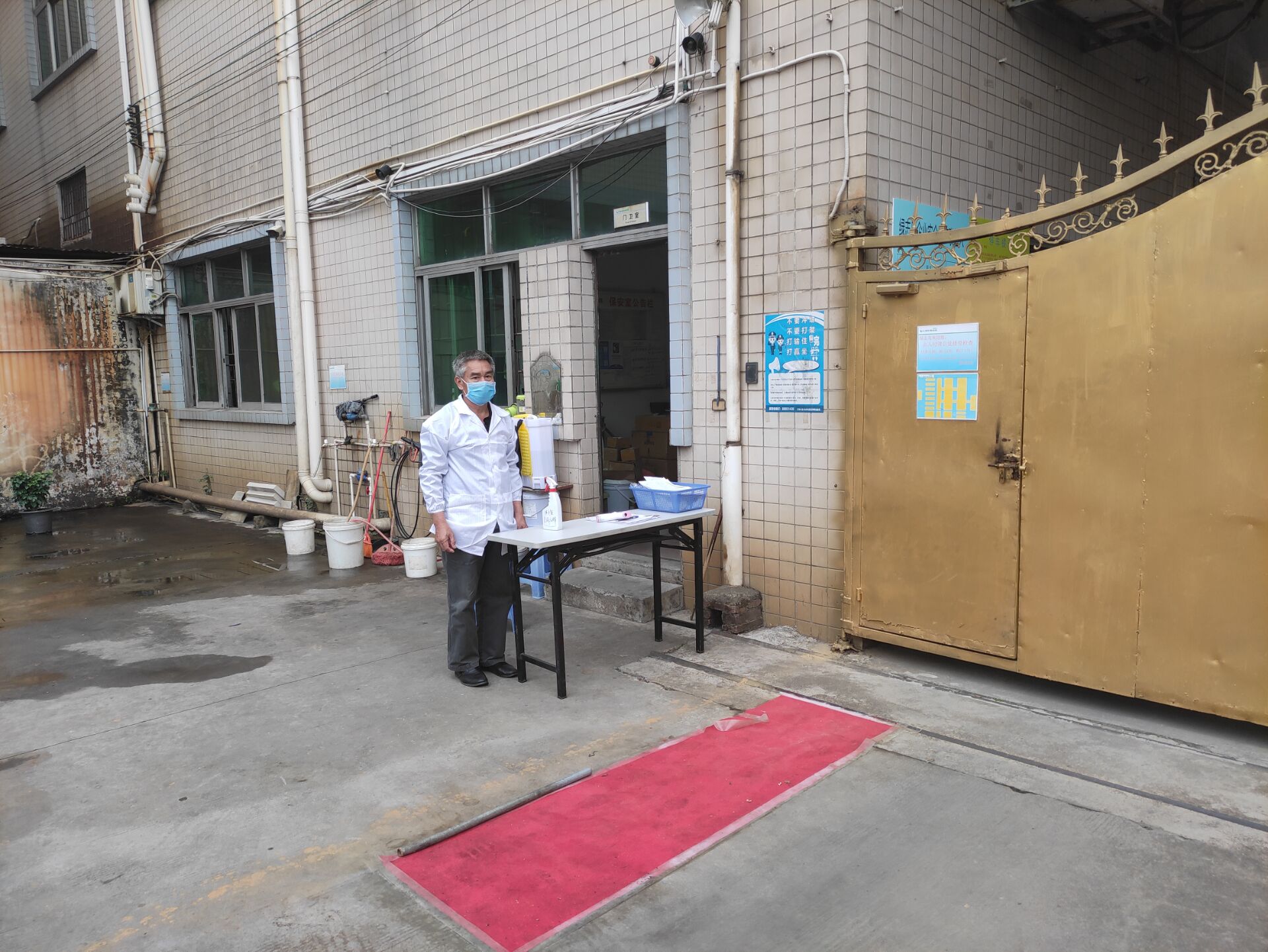 ▲賴(lài)總對(duì)車(chē)間每個(gè)角落用84消毒水進(jìn)行消毒
