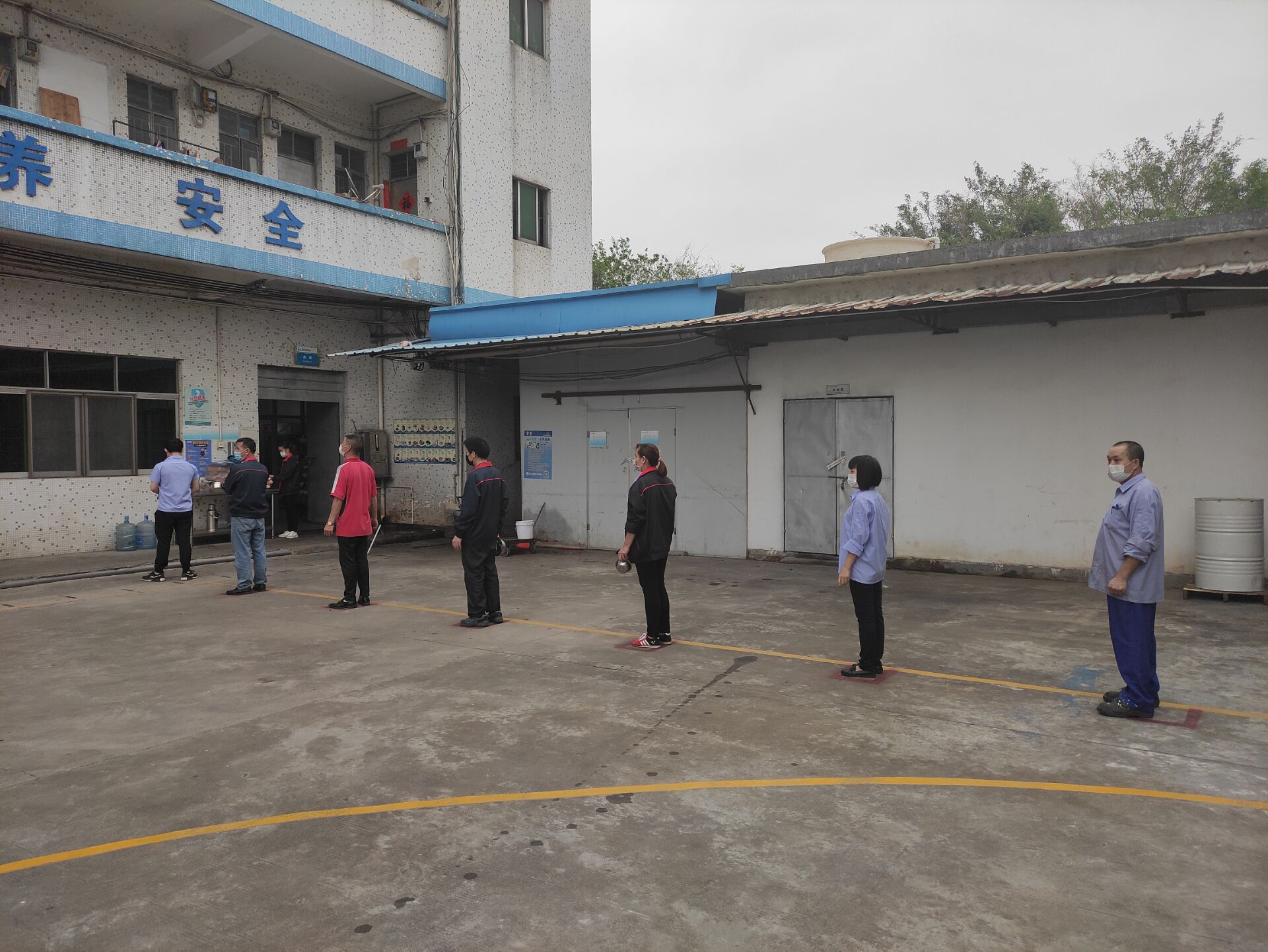 ▲周一早會(huì)盧經(jīng)理在室外給上崗人員宣導(dǎo)防疫知識(shí)