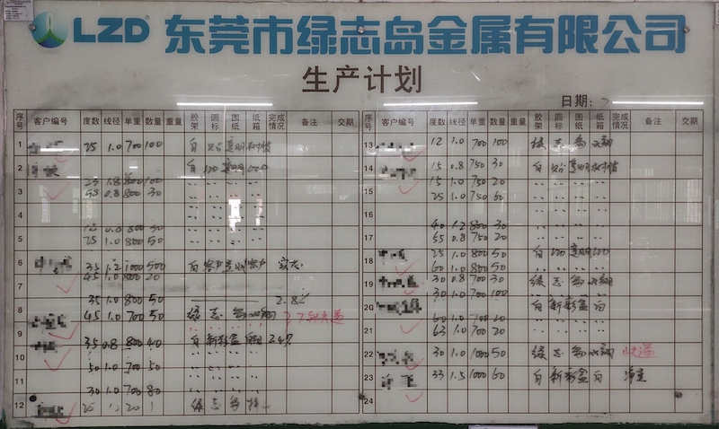 ▲二樓車(chē)間生產(chǎn)線計(jì)劃訂單