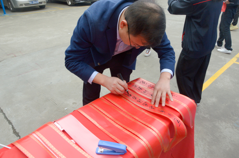 ▲綠志島總經(jīng)理賴高平先生為嘉賓寫(xiě)花籃語(yǔ)