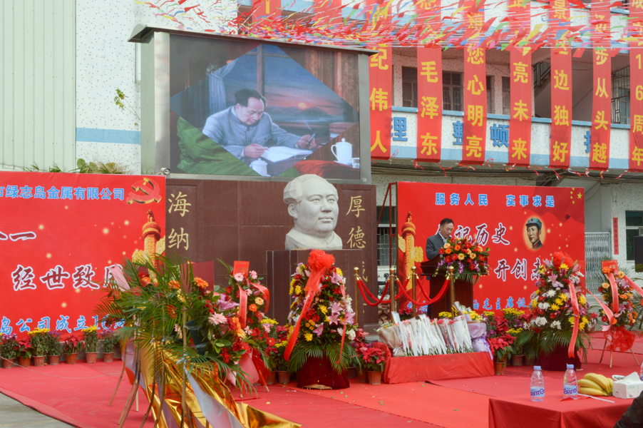 綠志島實(shí)業(yè)由朱祖生先生創(chuàng)業(yè)于2001年,經(jīng)過(guò)多年的發(fā)展奮斗,現(xiàn)在公司產(chǎn)品包括焊錫條、焊錫絲、焊錫膏,清洗劑,防銹劑,潤(rùn)滑油等。綠志島實(shí)業(yè)的發(fā)展,在以毛主席思想為信仰的指引下突飛猛進(jìn),在“吃水不忘挖井人”的感恩心下穩(wěn)步發(fā)展。為了鞏固毛主席思想作為綠志島的信仰核心,綠志島于2012年12月25日從泰山迎接來(lái)毛主席泰山石像,并立于公司內(nèi)部。自此,綠志島每年12月26日都會(huì)齊聚眾多認(rèn)同毛主席的追隨者,在綠志島內(nèi)緬懷紀(jì)念偉大領(lǐng)袖毛主席。