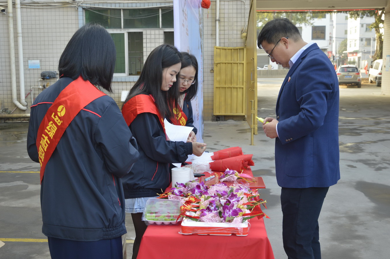 ▲綠志島總經(jīng)理賴高平先生為嘉賓寫花籃語(yǔ)