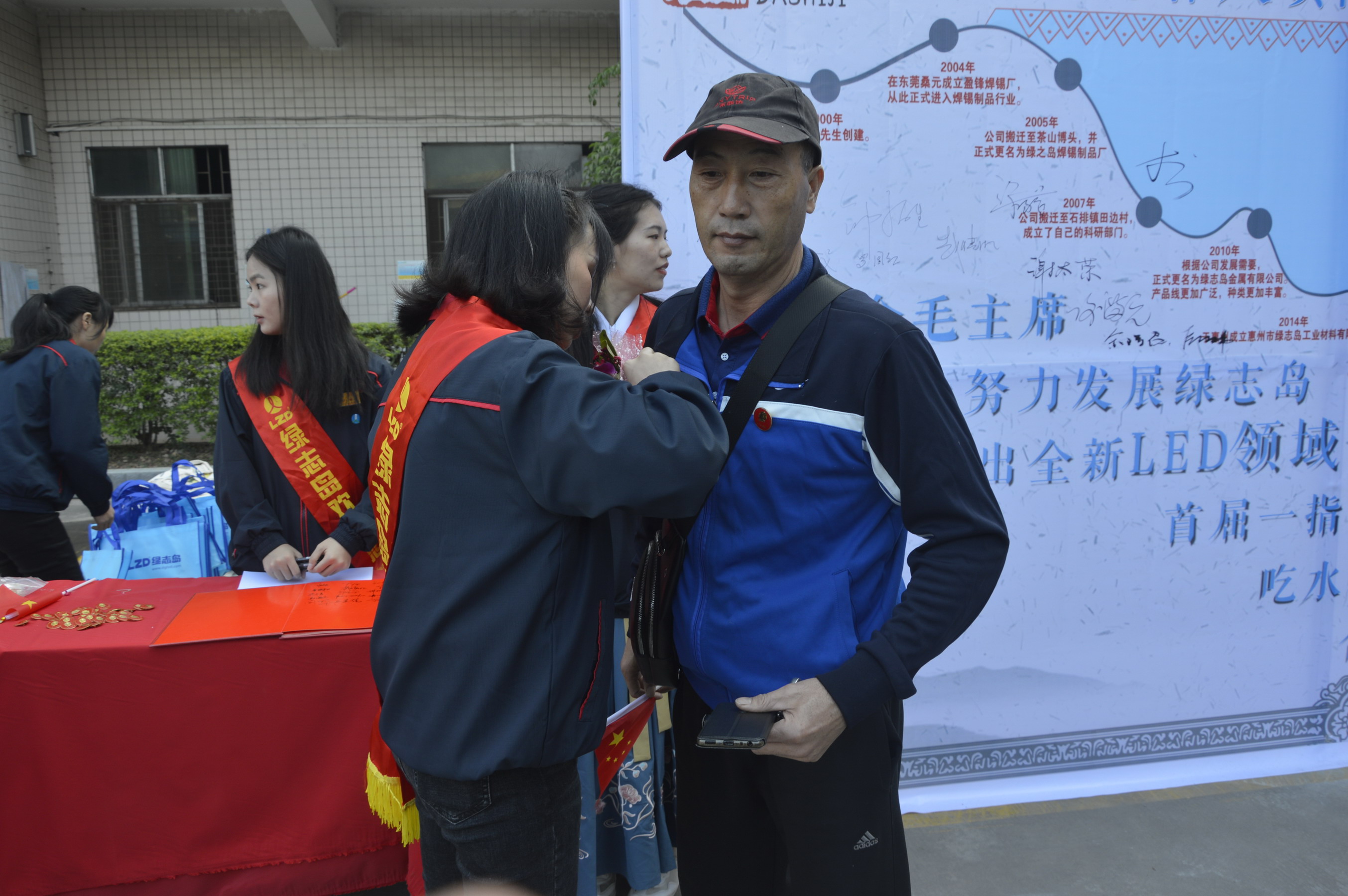 ▲迎賓人員為嘉賓佩戴毛主席像